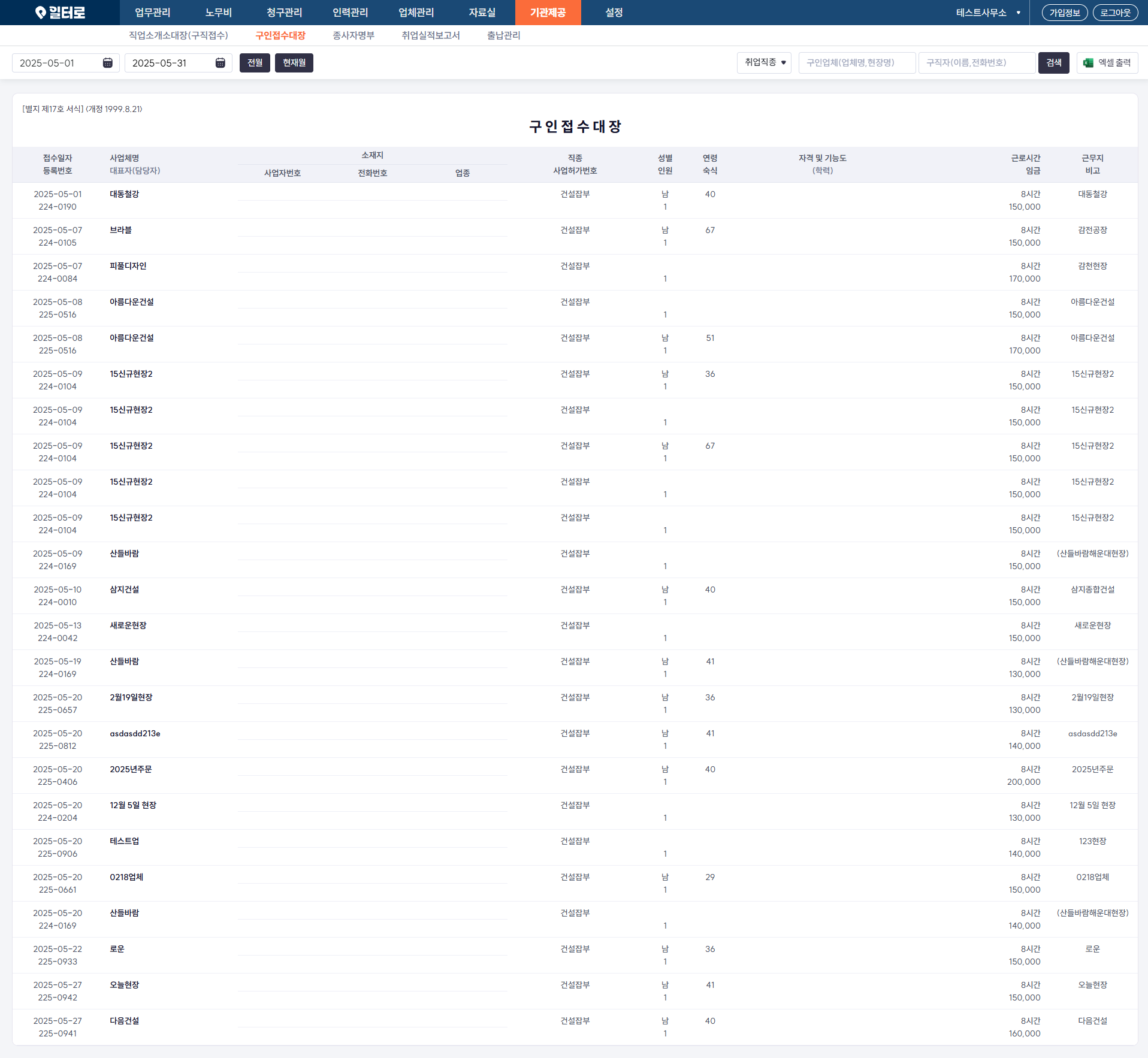 - 일별 필요한/배치가능한 인력 파악, 인력별 노무비 확인