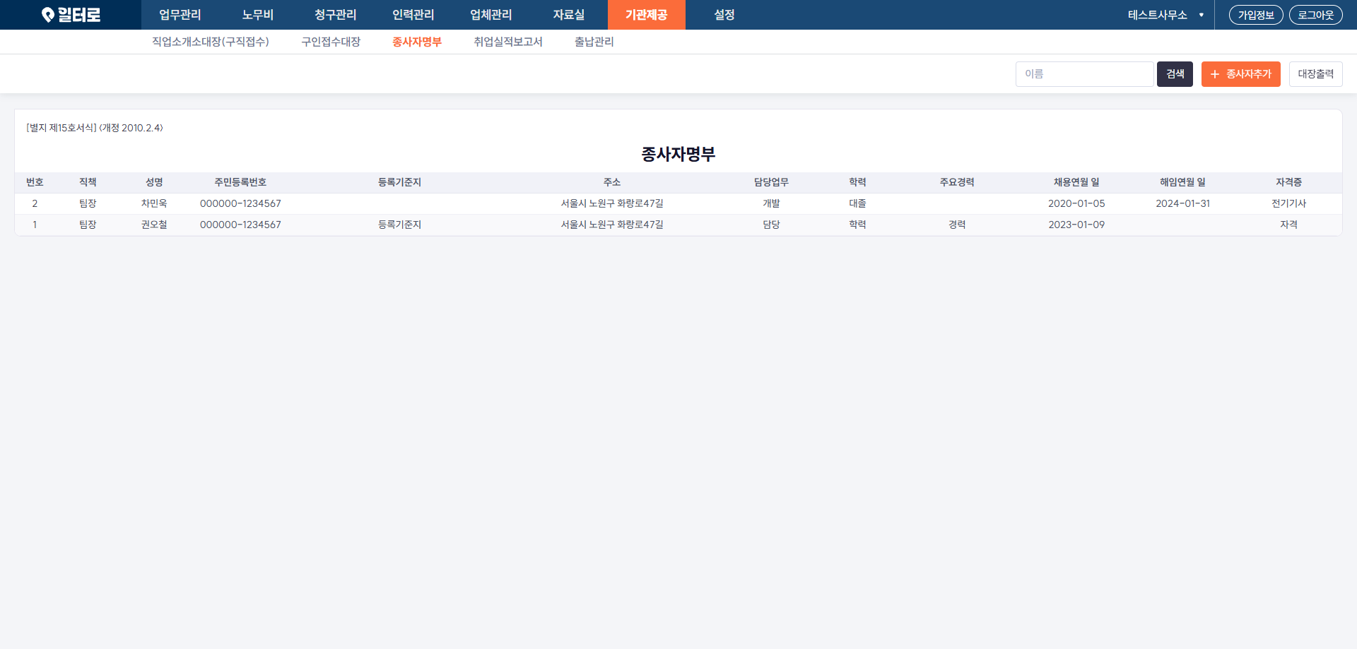 - 구직신청서, 구직등록표, 임금지급확약서 등 업무관련 서식자료 관리