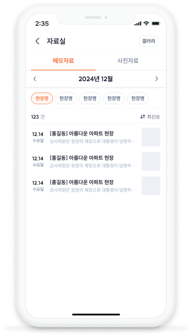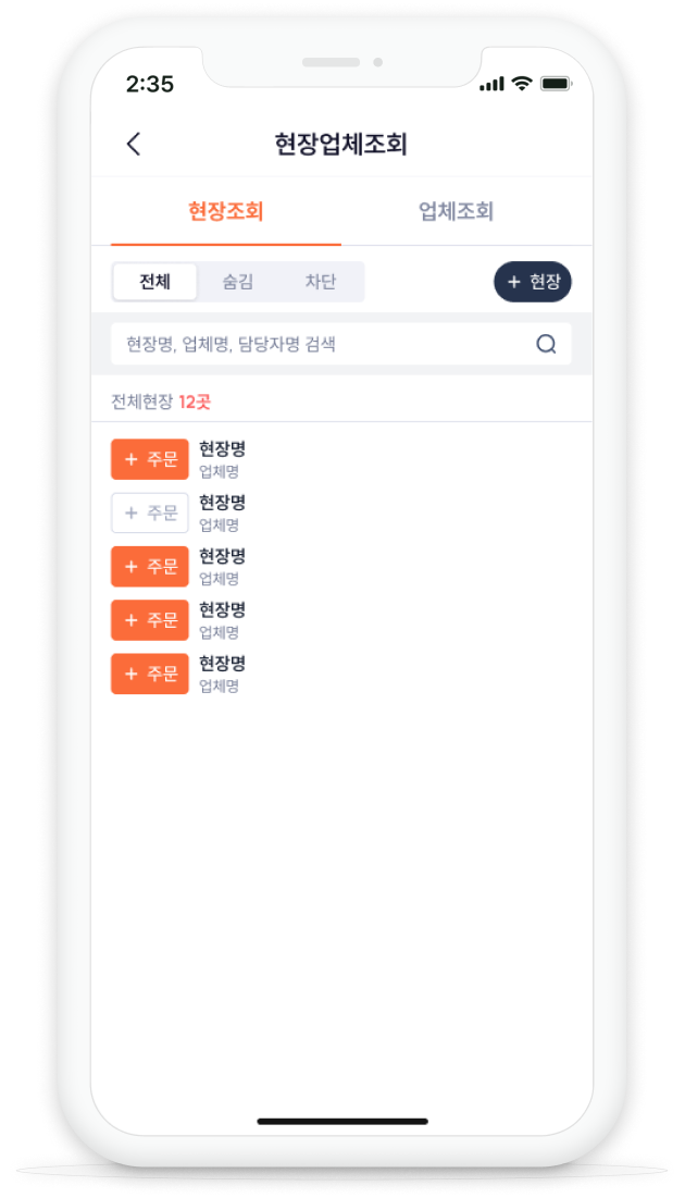 - 월달력을 통해 일자별로 거래처/현장별 주문서 등록 및 공유